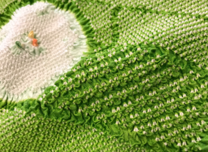 呉服まわり禁制アイテムその2です。むかし、駆け出しのころ、呉服屋組合の集まりで合同展示会があったとき、展示会場の控え室でのできごとです。誰かが差し入れしたミカンがテーブルの上に置いてありました。古参の呉服屋Aさんが、食べろ食べろと勧めてきます。すると、近くにいた、クリントイーストウッド似のこれまた古参の呉服屋Bさんは、いぶし銀の声で、「こんな所でミカンを食っちゃいかんぜぇ〜」と呟きました駆け出しの私には、そのセリフがとても印象に残っています。AさんとBさんが犬猿の仲であったわけでもなく、BさんがAさんに喧嘩を売ったわけでもないく、単純にBさんは正義感から言ったのでありますが、その理由は、ミカンの果汁や皮に含まれている液は強い酸性であり、それが、売り物である染物や織物につくと変色の原因になるからであります。控え室なので、そこに商品はないのですが、手に汚れをつけたたまま、商品を触れば同じ事ですし、油性分も含まれているので、水で簡単に手を洗っただけでは、取れない事もある。というわけです。実際、油汚れ用に洗剤に柑橘系オイルが入っているものもあります。そんなわけで、皆様も着物を触る時にには、綺麗な手で触りましょう。長持ちの秘訣です。