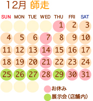12月25日〜29日・1月2日3日 弊店にて